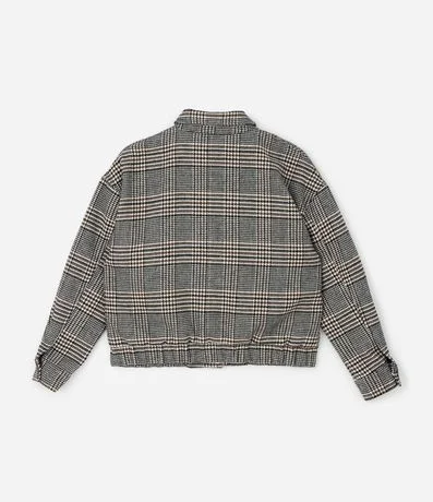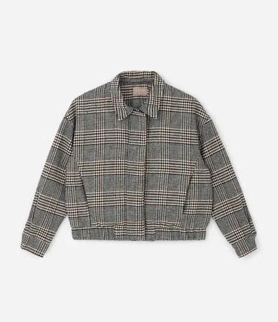 Ref: Jaqueta feminina confeccionada em polivelour com estampa xadrez. Possui modelagem bomber, gola colarinho, fechamento frontal, mangas longas e bolsos funcionais. Ideal para composições casuais de inverno, oferecendo conforto térmico e estilo.