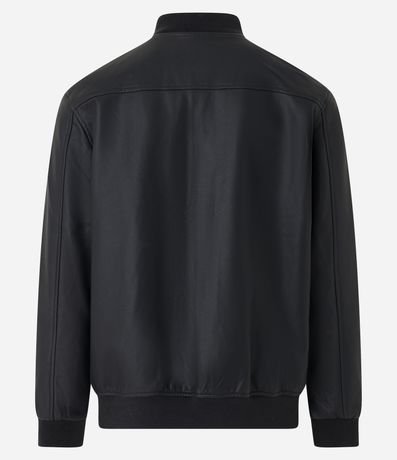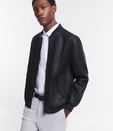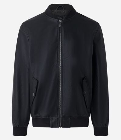 Ref: Jaqueta bomber feminina, confeccionada em PU, com fechamento frontal em zíper e bolsos lapela com botão.