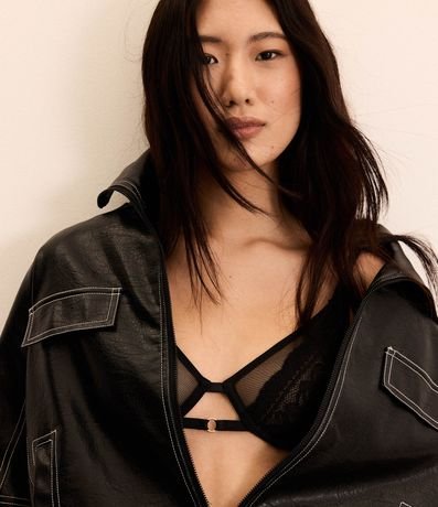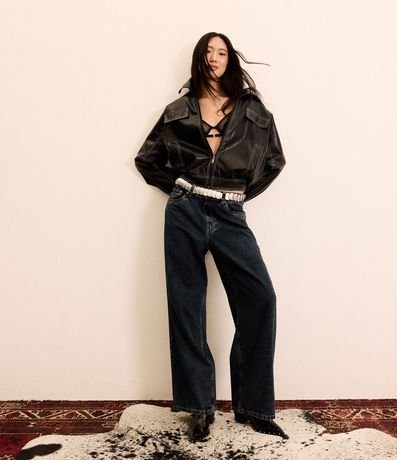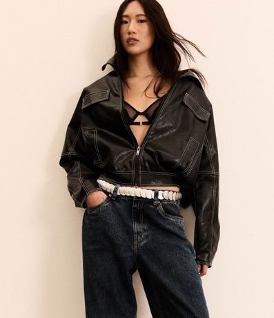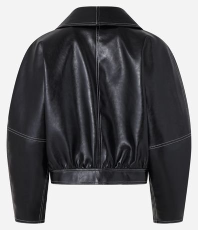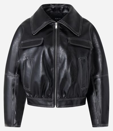 Ref: Jaqueta bomber com fechamento frontal por zíper, pesponto contrastante e bolsos.