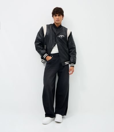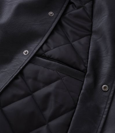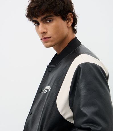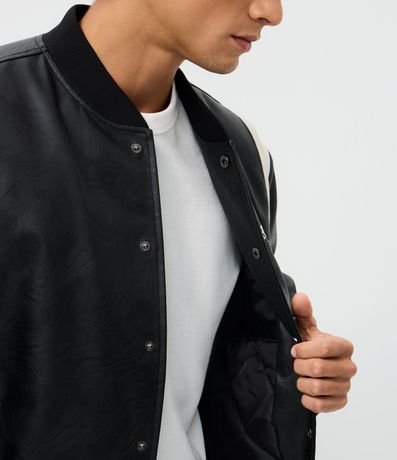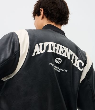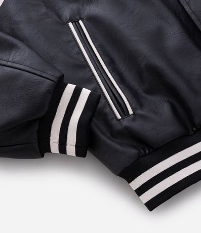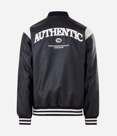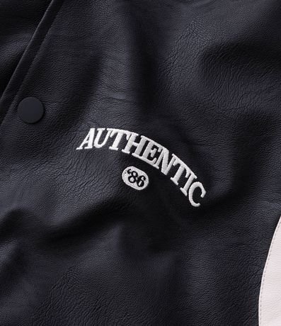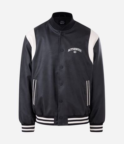 Ref: Jaqueta bomber em pu com gola alta, fechamento por vista oculta, bolsos e Bordado Authentic.