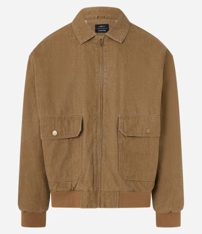 Jaqueta Bomber em Sarja com Bolsos Cargo