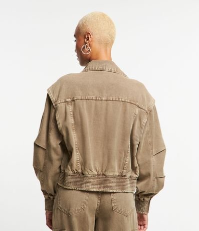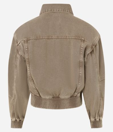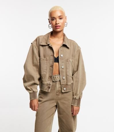 Jaqueta Bomber em Sarja com Bolsos e Elástico na Barra