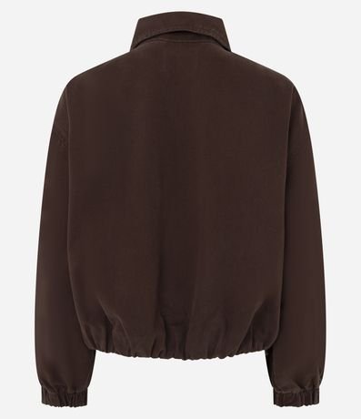 Jaqueta Bomber em Sarja com Pregas e Zíper Frontal