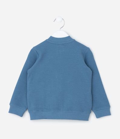 Jaqueta infantil confeccionada em algodão mais sustentável, no modelo bomber. Possui gola redonda, mangas longas, fechamento por zíper, bolsos, barras ajustadas e texturizada.