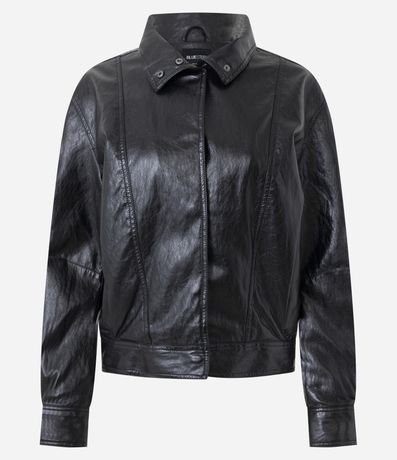 Jaqueta Bomber Pesada em PU com Punhos Ajustados