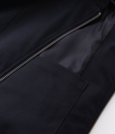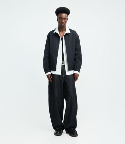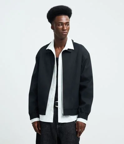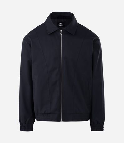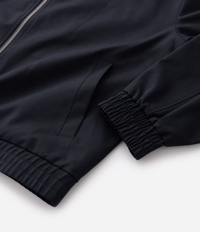 Ref: Jaqueta masculina no modelo boxy. Possui gola colarinho, fechamento em zíper, manga longa, barras ajustadas com elástico, bolso e detalhes em recortes.