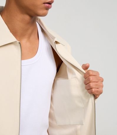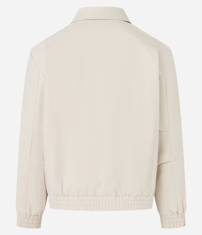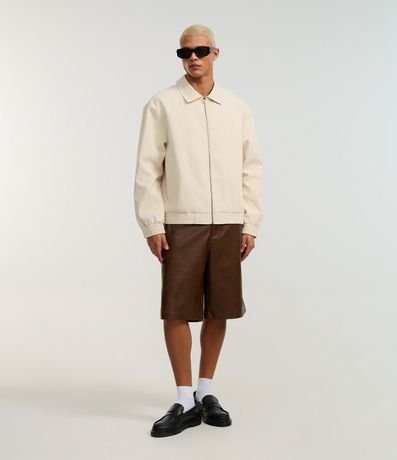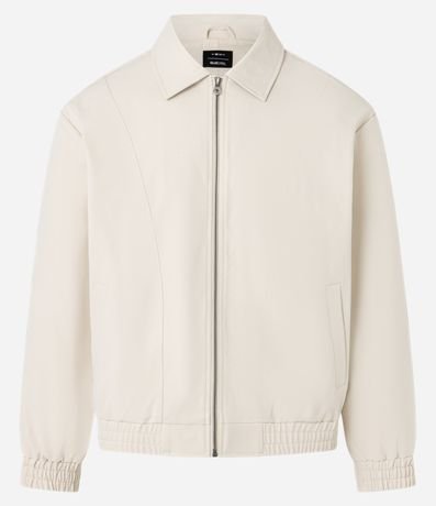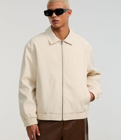 Ref: Jaqueta masculina no modelo boxy. Possui gola colarinho, fechamento em zíper, manga longa, barras ajustadas com elástico, bolso e detalhes em recortes.
