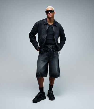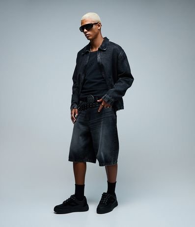 Jaqueta Boxy Denim Jeans com Estampa EVOM Veigh