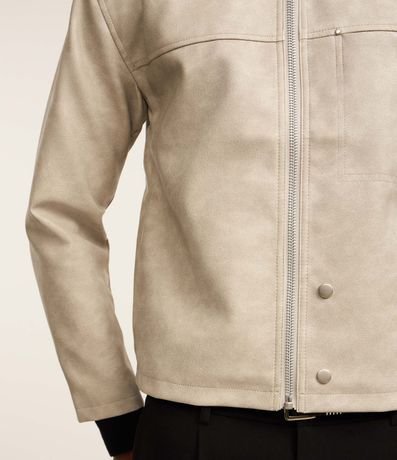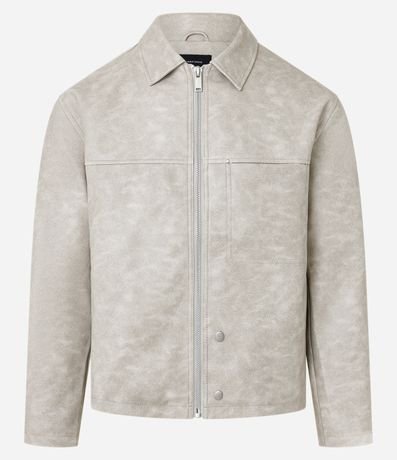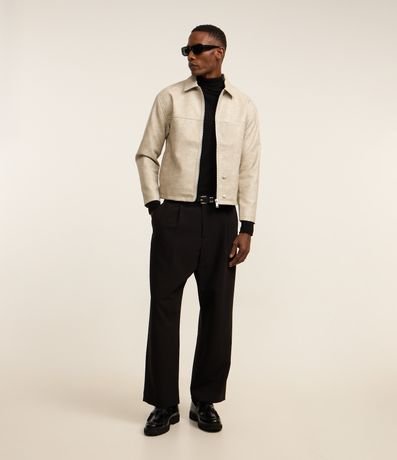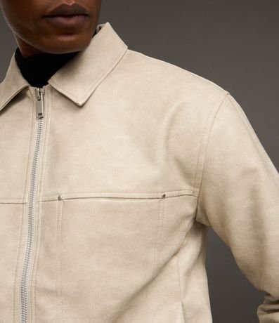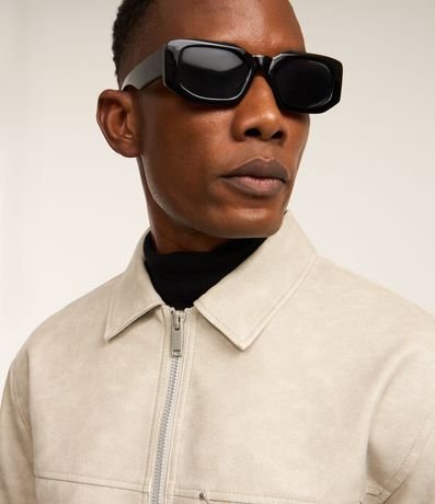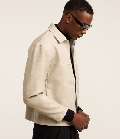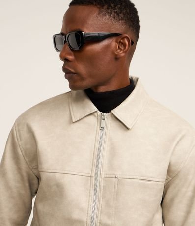 Ref: Jaqueta masculina confeccionada em material sintético no modelo boxy, possui gola colarinho, fechamento em zíper, manga longa e detalhes em recortes.