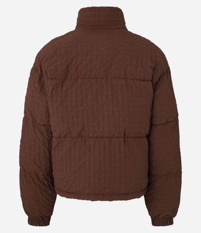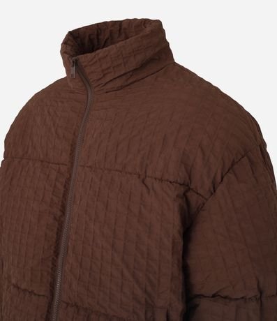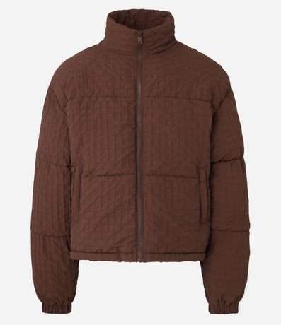Ref: Jaqueta boxy masculina confeccionada em poliamida, com gola alta, fechamento em zíper e bolsos. A peça possui textura e elástico nos punhos.