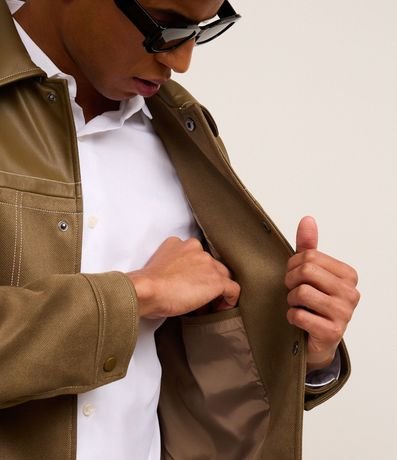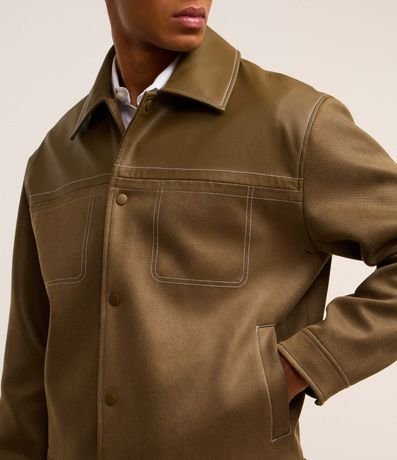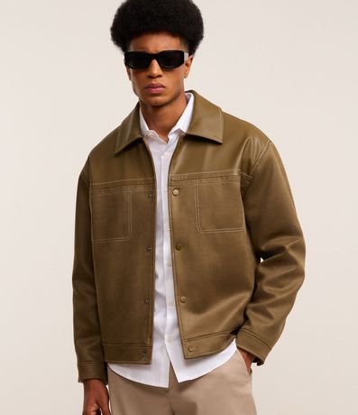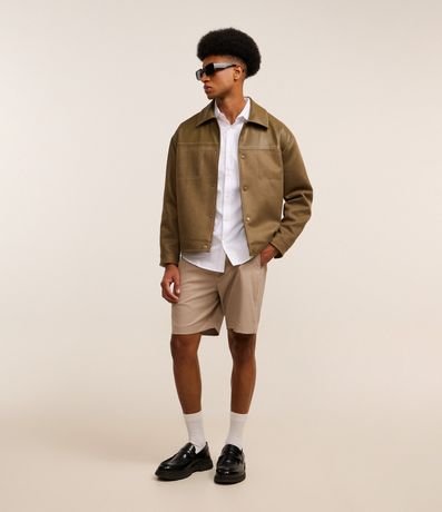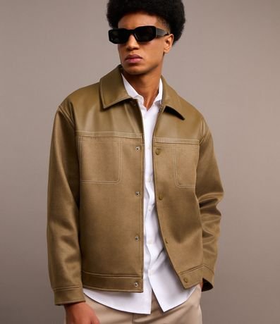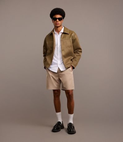 Ref: Jaqueta masculina confeccionada em sarja, no modelo boxy. Possui gola colarinho, manga longa, punhos e barra ajustados, por botões, abotoamento frontal, recortes e pespontos.