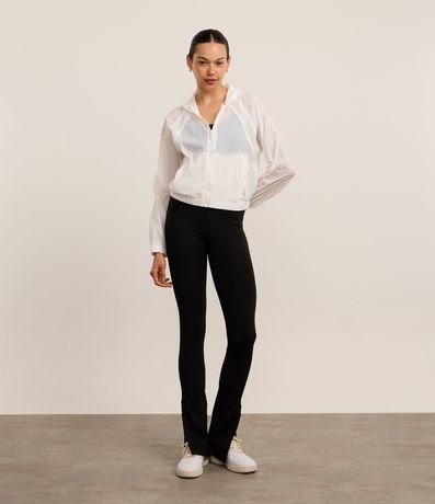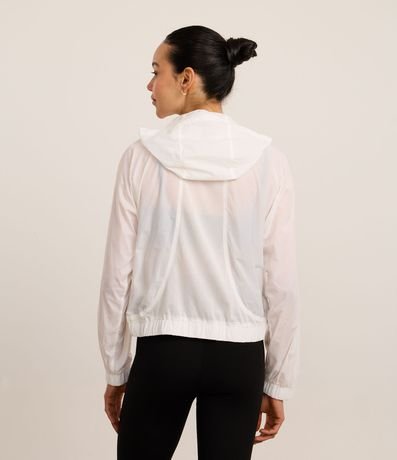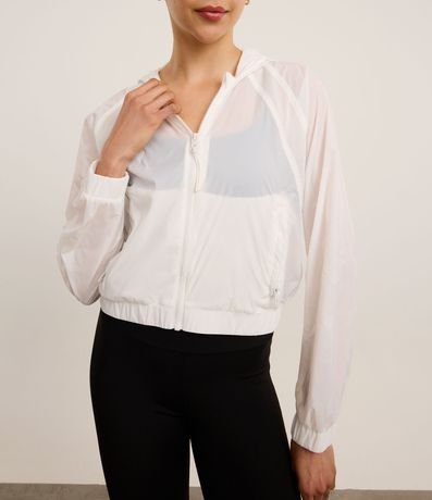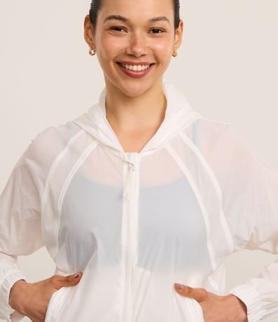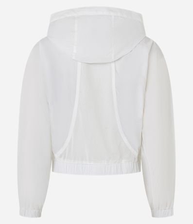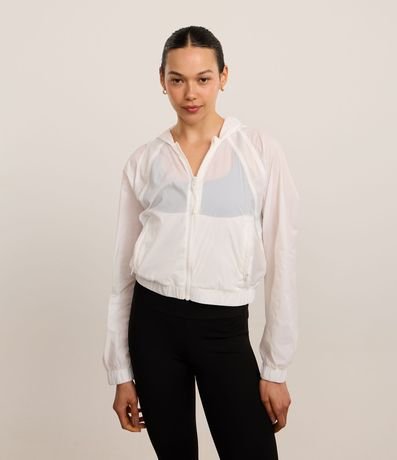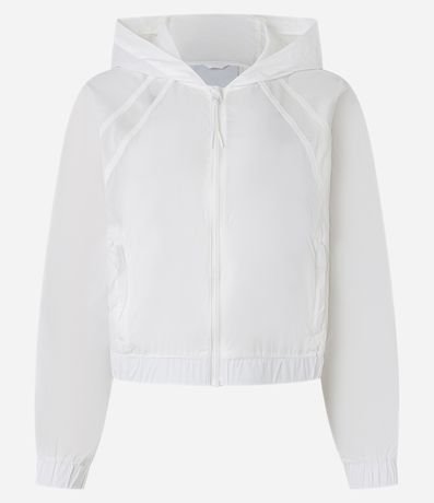 Ref: Jaqueta corta vento esportiva, confeccionada em poliamida, com capuz, fechamento frontal em zíper, puxador emborrachado e punhos ajustados.