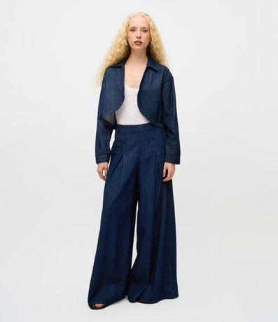 Jaqueta Cropped em Jeans Estruturada