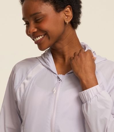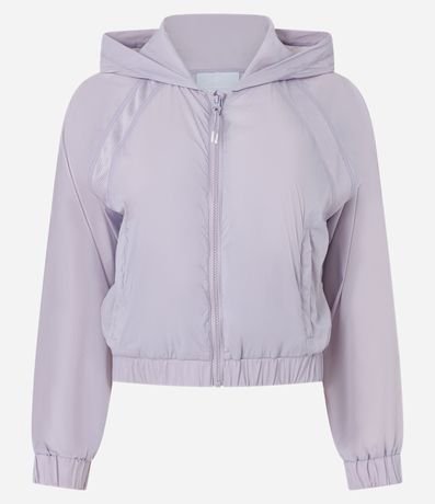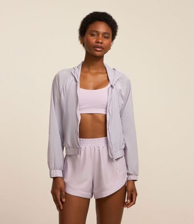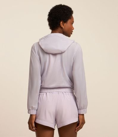 Ref: Jaqueta cropped quebra vento com puxador emborrachado e capuz.