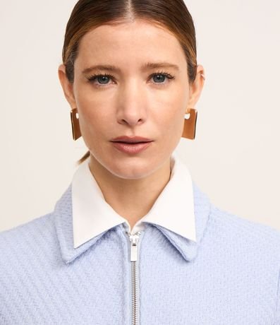 Ref: Jaqueta de comprimento curto, confeccionada em tweed, com colarinho na gola, zíper frontal para fechamento além de bolsos frontais. O agasalho conta ainda com tecido todo texturizado.