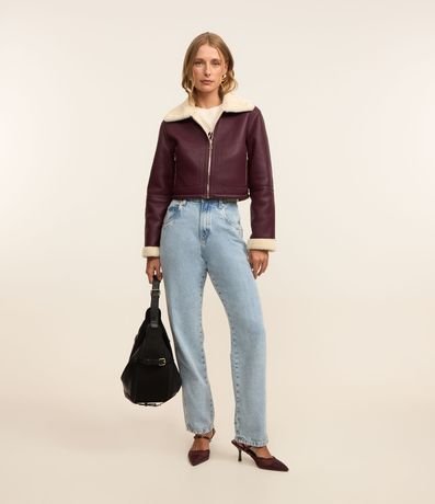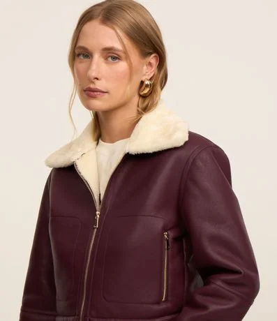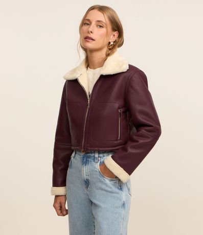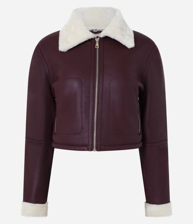 Jaqueta feminina confeccionada em material sintético, com gola em gamulã permitindo um efeito fofo, fechamento por zíper, detalhe em recortes, bolsos e detalhe gamulã nas mangas.