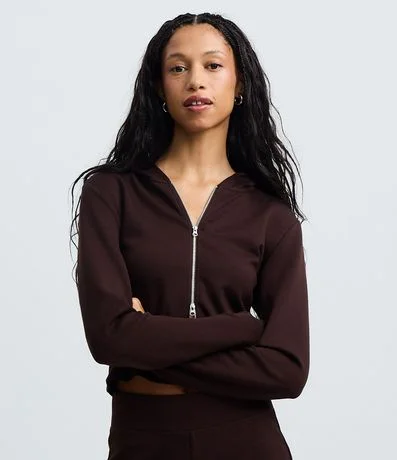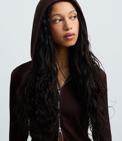 Ref: Jaqueta feminina confeccionada em poliéster certificado. Possui modelagem reta e comprimento curto, capuz fixo, mangas longas e fechamento frontal por zíper. Ideal para composições casuais, oferecendo praticidade e conforto no uso diário.