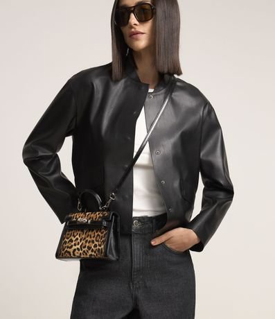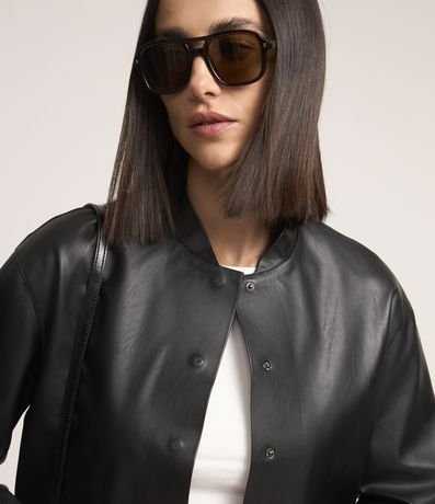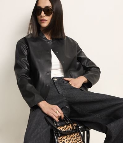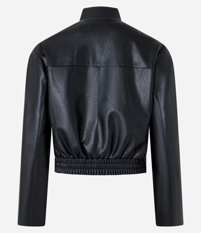 Jaqueta em PU com Bolsos Lapela e Abotoamento