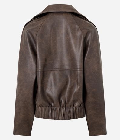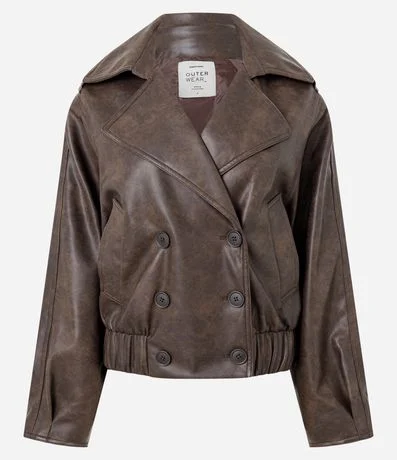 Jaqueta em PU com Gola Blazer e Abotoamento Transpassado