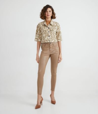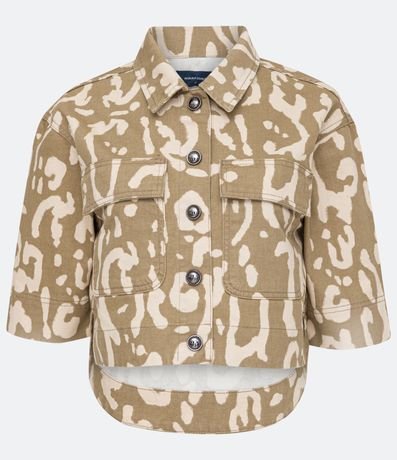 Ref: Jaqueta em sarja, com gola padre, mangas curtas e estampa animal print. Charmosa, a peça conta com inúmeros detalhes que a diferenciam, proporcionando assim um ar despojado e estilo oversized ao look.