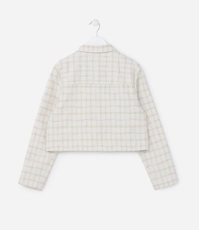 Ref: Jaqueta infantil em tweed com golinha polo, bolsinho fake e abotoamento frontal com detalhe de abelinha com strass.