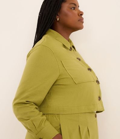 Ref: Jaqueta feminina Curve & Plus Size confeccionado em viscolinho com gola colarinho, abotoamento frontal, bolsos e manga longa ajustada.