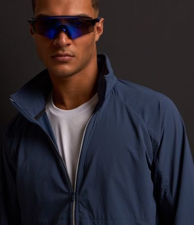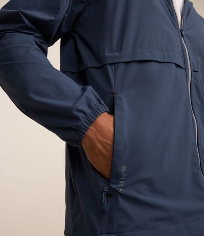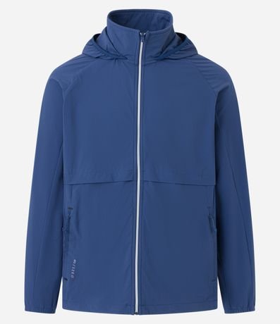 Ref: Jaqueta masculina, modelo esportivo, com capuz, gola alta, manga longa, zíper, bolsos e detalhes em recortes.