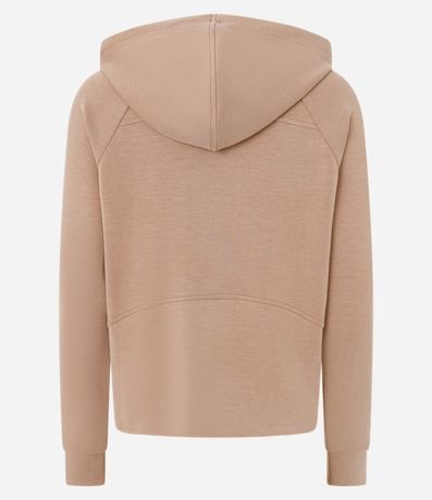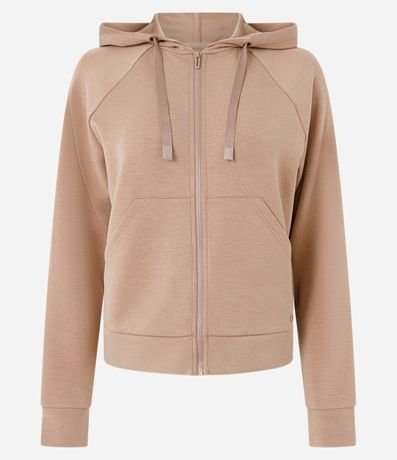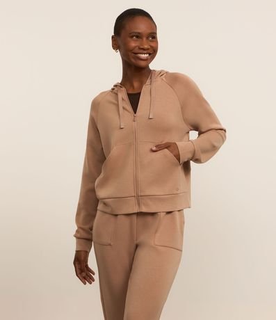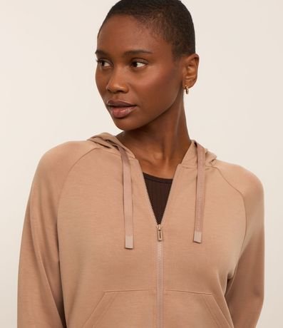Jaqueta feminina em microfibra leve, no modelo esportiva com capuz, cordão para ajustes, fechamento por zíper, bolsos e detalhe em recortes. Possui 45% de modal em sua confeccção;