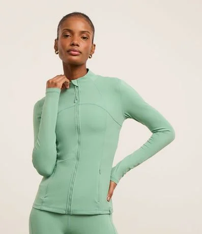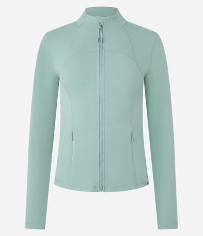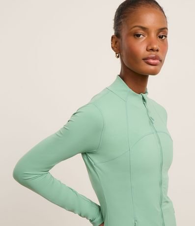 Ref: Jaqueta feminina esportiva, confeccionada e microfibra, com recortes e bolsos.