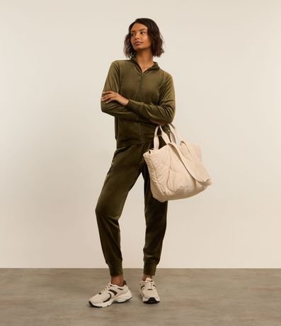 Jaqueta Esportiva em Plush com Gola Alta e Zíper