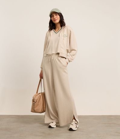 Jaqueta Esportiva Oversized com Estampa Bordada e Listras