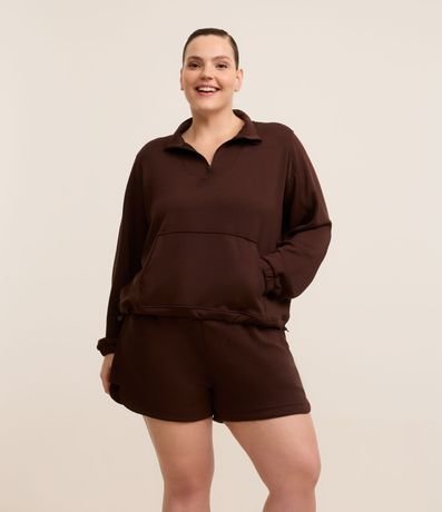 Ref: Jaqueta feminina plus size, fechada no modelo esportiva com gola redonda, zíper, bolso canguru, manga longa e ajustador na barra.