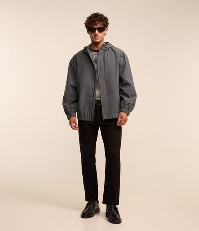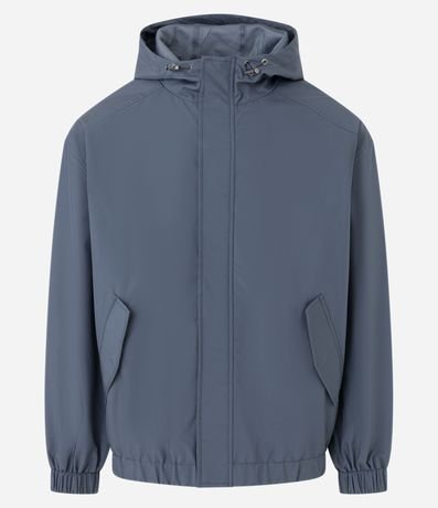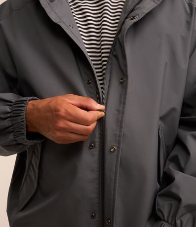 Ref: Jaqueta com capuz, gola alta, mangas longas e bolsos com lapela e botões.