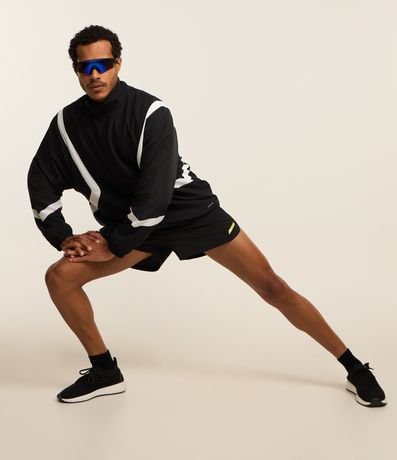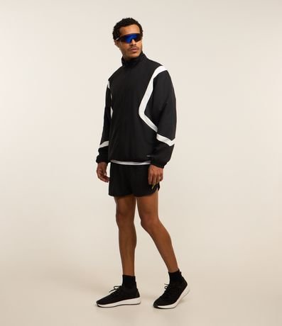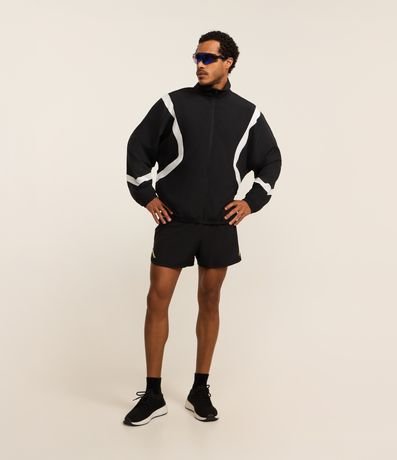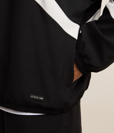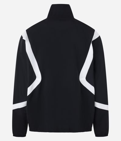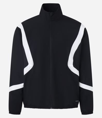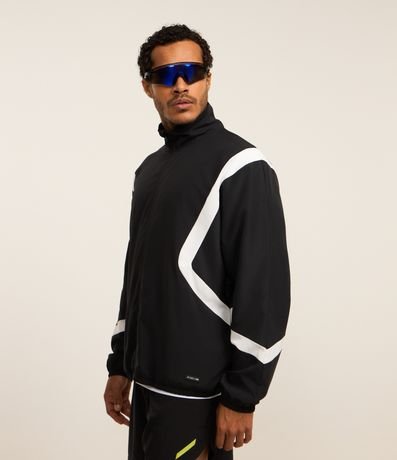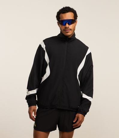 Ref: Jaqueta masculina, a peça possui gola alta, fechamento frontal em zíper, manga longa e recortes com detalhes contrastantes.