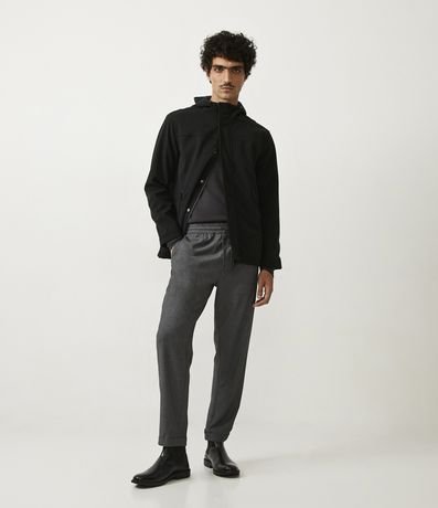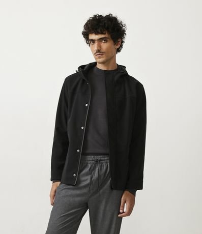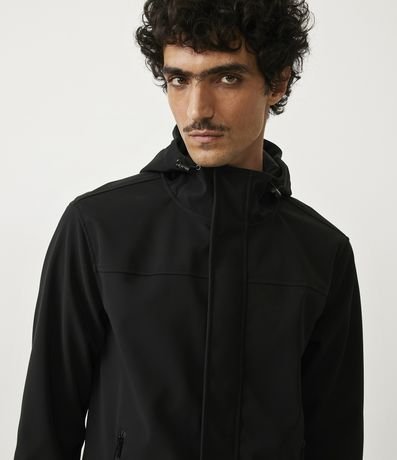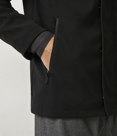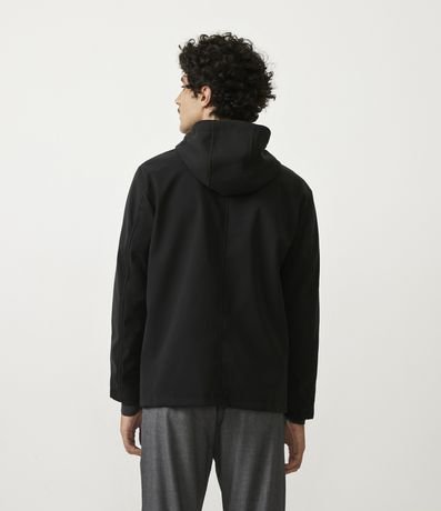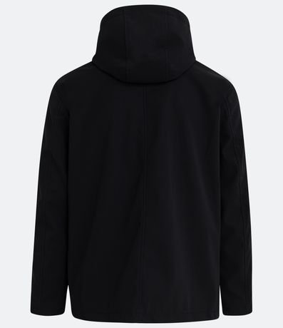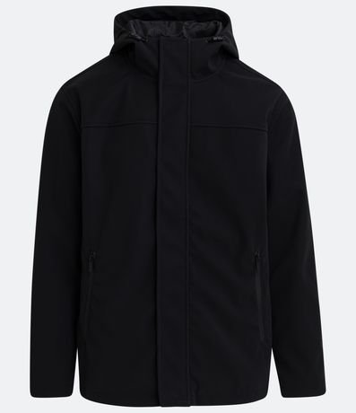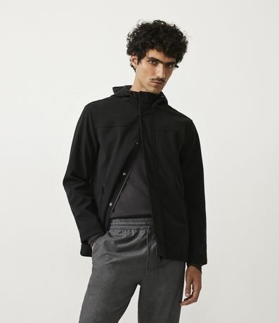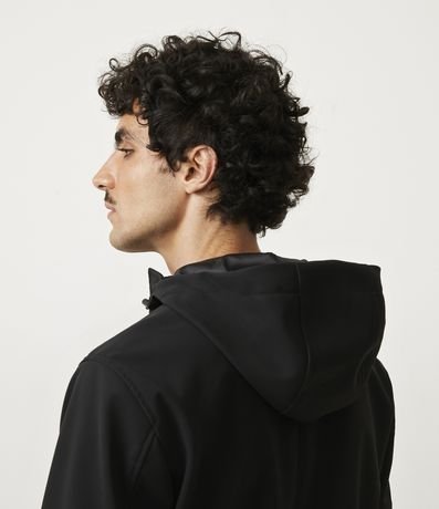Ref: Jaqueta masculina, impermeável, com capuz, regulador elástico, fechamento por botão e zíper, recortes, bolsos com zíper e sem estampa.