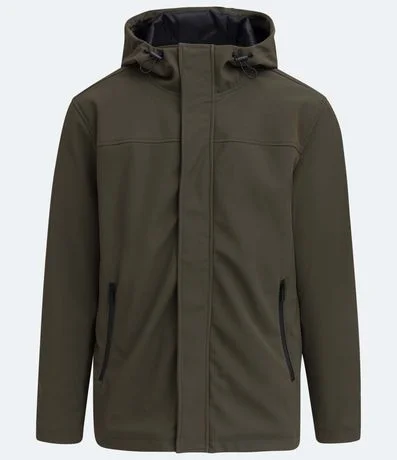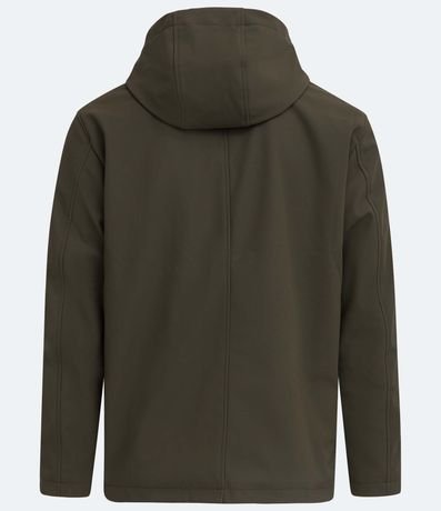 Ref: Jaqueta masculina, impermeável, com capuz, regulador elástico, fechamento por botão e zíper, recortes, bolsos com zíper e sem estampa.