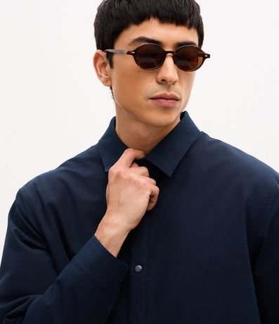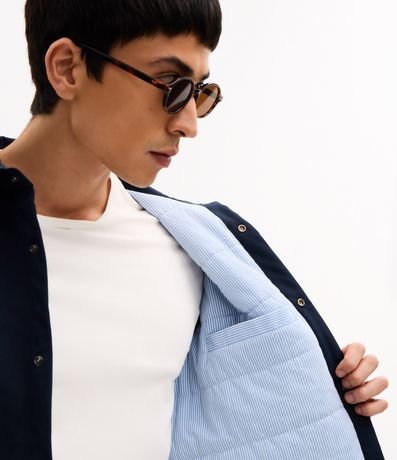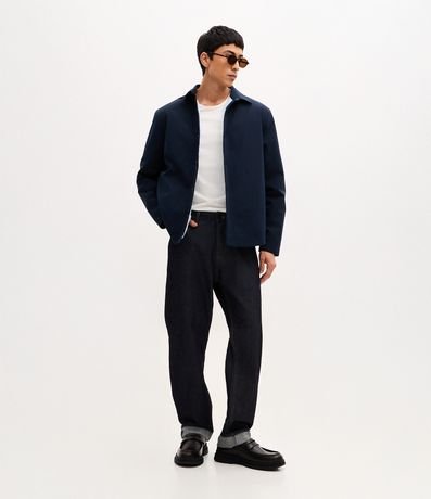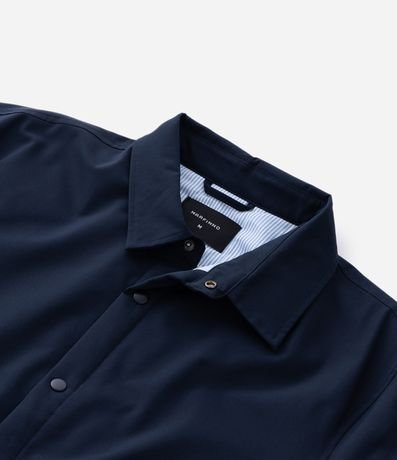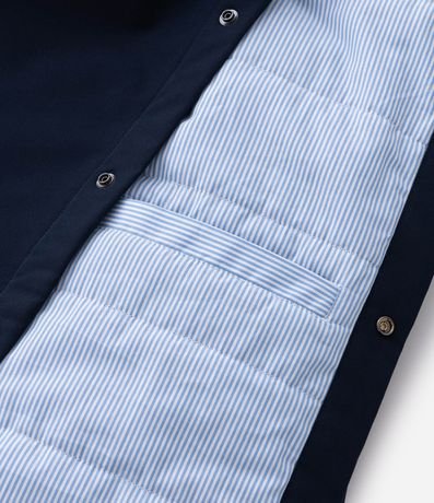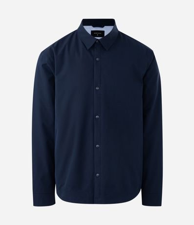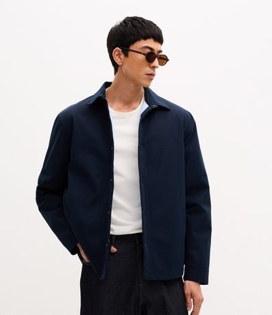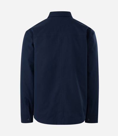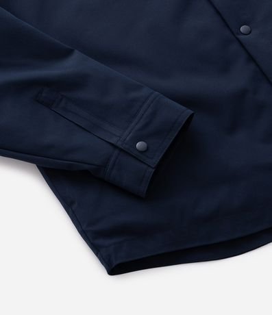 Jaqueta masculina, impermeável, fechamento por botão e sem estampa.