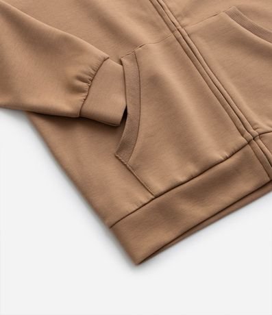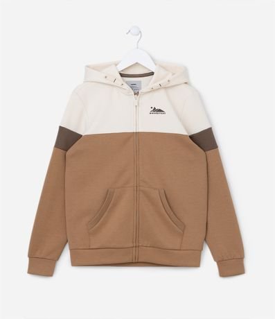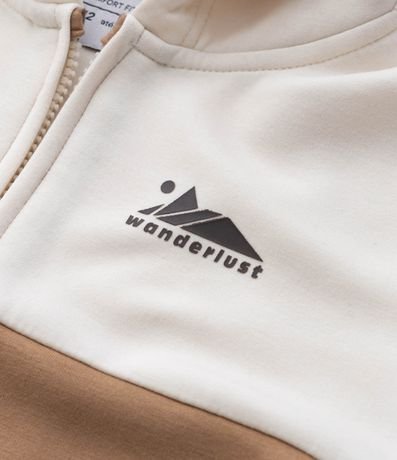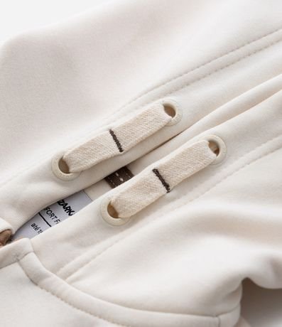 Ref: Jaqueta infantil em fleece, com capuz e detalhe de cadarço, mangas longas, bolsos frontais, e recortes.