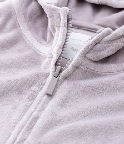 Jaqueta infantil confeccionada em plush macio, com toque aveludado e caimento confortável. Possui capuz, mangas longas, fechamento frontal em zíper e bolsos frontais embutidos. Os punhos e a barra com elástico garantem melhor ajuste para o dia a dia.