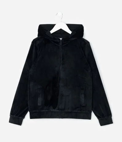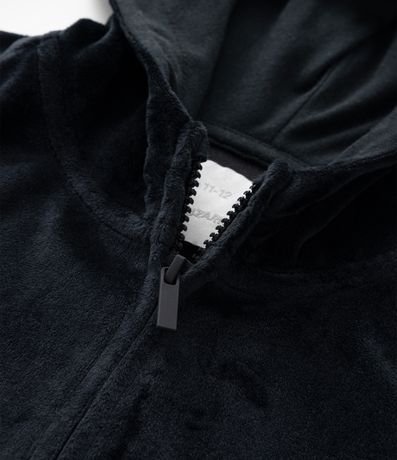Jaqueta infantil confeccionada em plush macio, com toque aveludado e caimento confortável. Possui capuz, mangas longas, fechamento frontal em zíper e bolsos frontais embutidos. Os punhos e a barra com elástico garantem melhor ajuste para o dia a dia.