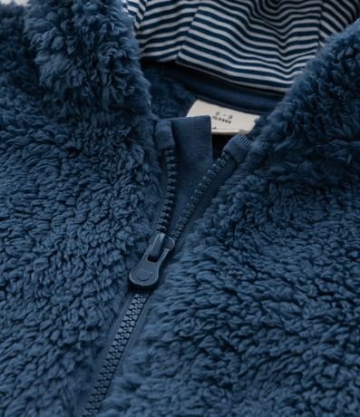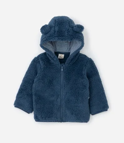 Ref: Jaqueta infantil quentinha, com capuz e orelhinhas, mangas longas e fechamento por zíper.