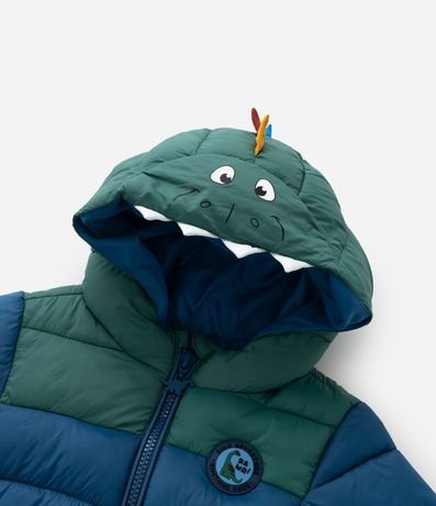 Ref: Jaqueta infantil confeccionada em microfibra, com capuz com estampa interativa de dinossauro, com crista e dentinhos fofos! Possui manga longa, fechamento por zíper e bolsos frontais.