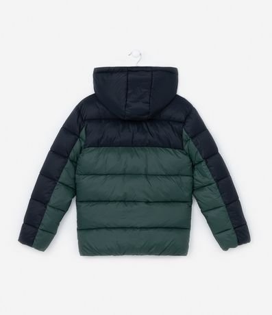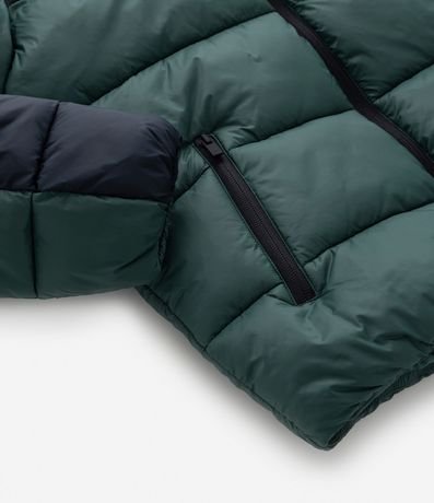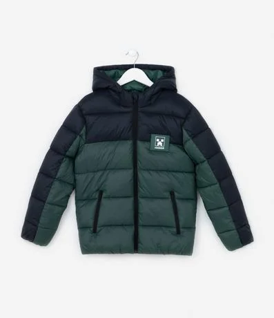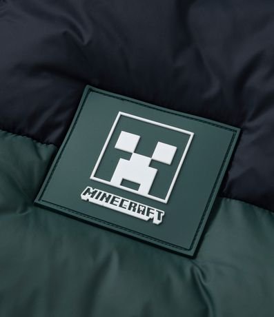 Jaqueta infantil confeccionada em microfibra, gola com capuz, mangas longas, recortes e fechamento por zíper. Possui bolsos e estampa do Minecraft.