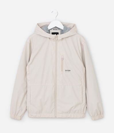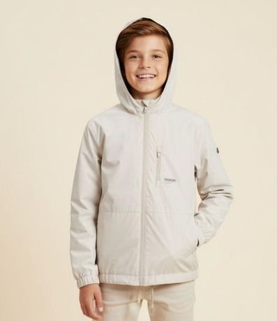 Ref: Jaqueta infantil com textura emborrachada, gola com capuz, mangas longas, fechamento por zíper, bolsos, sendo um no peito com zíper.