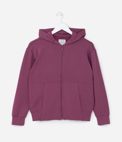 Ref: Jaqueta infantil com gola capuz, fechamento por zíper e manga longa. Sem estampa. Peça confeccionada em poliéster e modal, com toque suave e confortável.