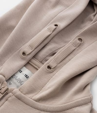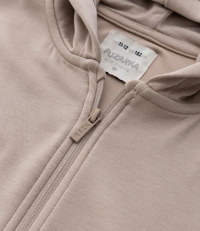 Jaqueta infantil com gola capuz, fechamento por zíper e manga longa. Sem estampa. Peça confeccionada em poliéster e modal, com toque suave e confortável.