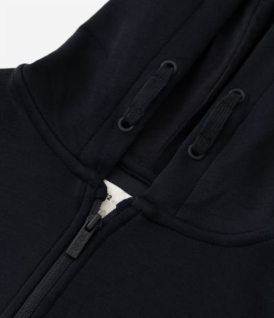 Ref: Jaqueta infantil com gola capuz, fechamento por zíper e manga longa. Sem estampa. Peça confeccionada em poliéster e modal, com toque suave e confortável.