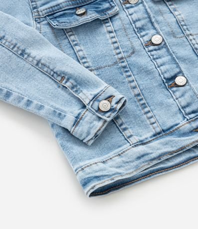Ref: Jaquetinha infantil confeccionada em jeans mais sustentável, de modelo básica. Possui gola colarinho, manga longa e bolsinhos frontais.
