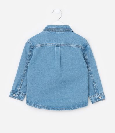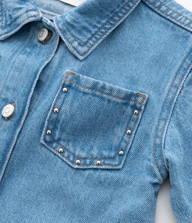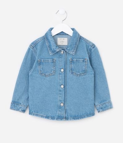 Ref: Jaqueta infantil confeccionada em jeans mais sustentável. Com estilo camisa, a peça possui gola colarinho, mangas longas, fechamento por botões e bolsinhos com detalhes de tachinhas aplicadas, super charmosa!