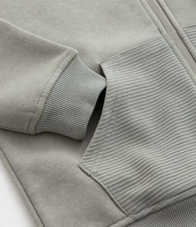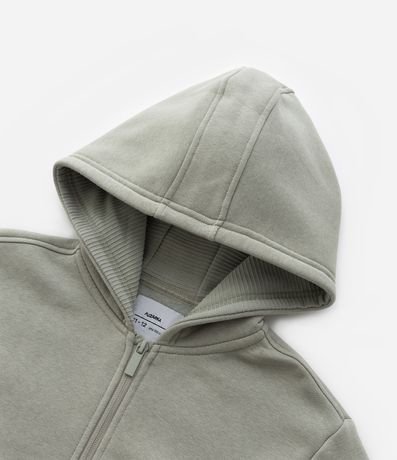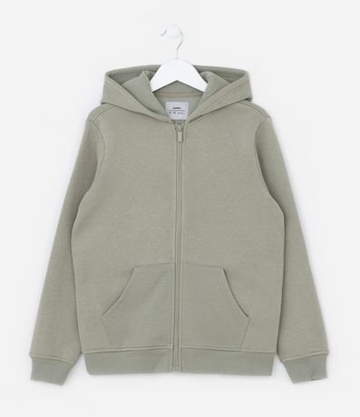Ref: Jaqueta infantil confeccionada em moletom com forro fleece, quentinho, de material mais sustentável, com capuz na gola, mangas longas, bolsos, fechamento por zíper e sem estampa.